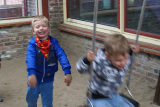 De schoenen moeten uit voor we binnen mogen in de speelruimte